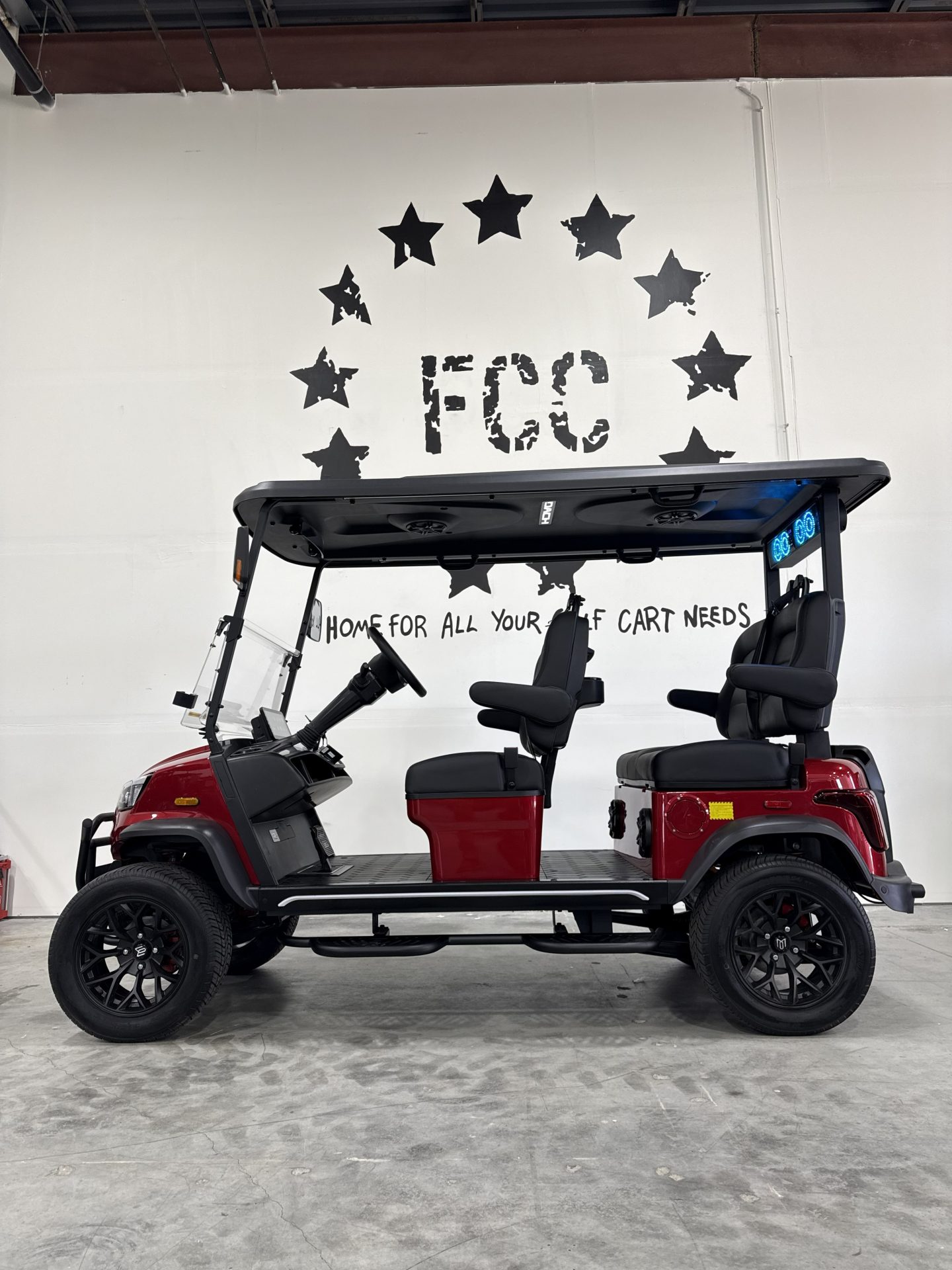 - Additional special 110ah (wall plug in) accessory for 3 available outlets for anything you want to plug into your cart