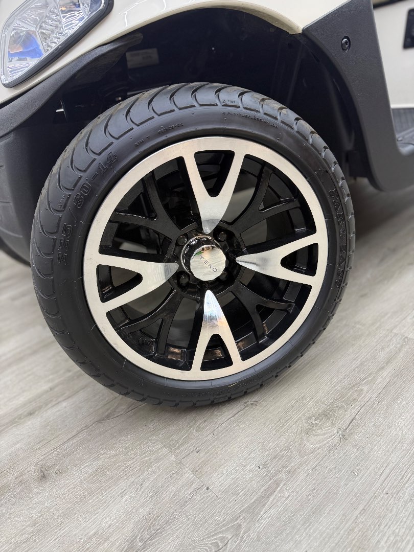 The 2021 EZGO RXV Elite features a 56V lithium battery system, 48 Volt AC motor, and a 235 Amp AC controller. It also delivers a top speed of 17.5-19.5 mph (28-31 kph) with motor shaft direct drive.