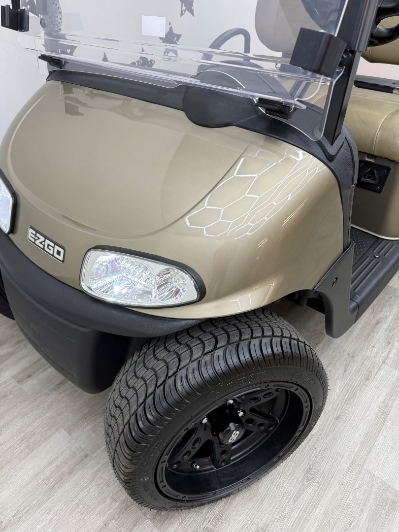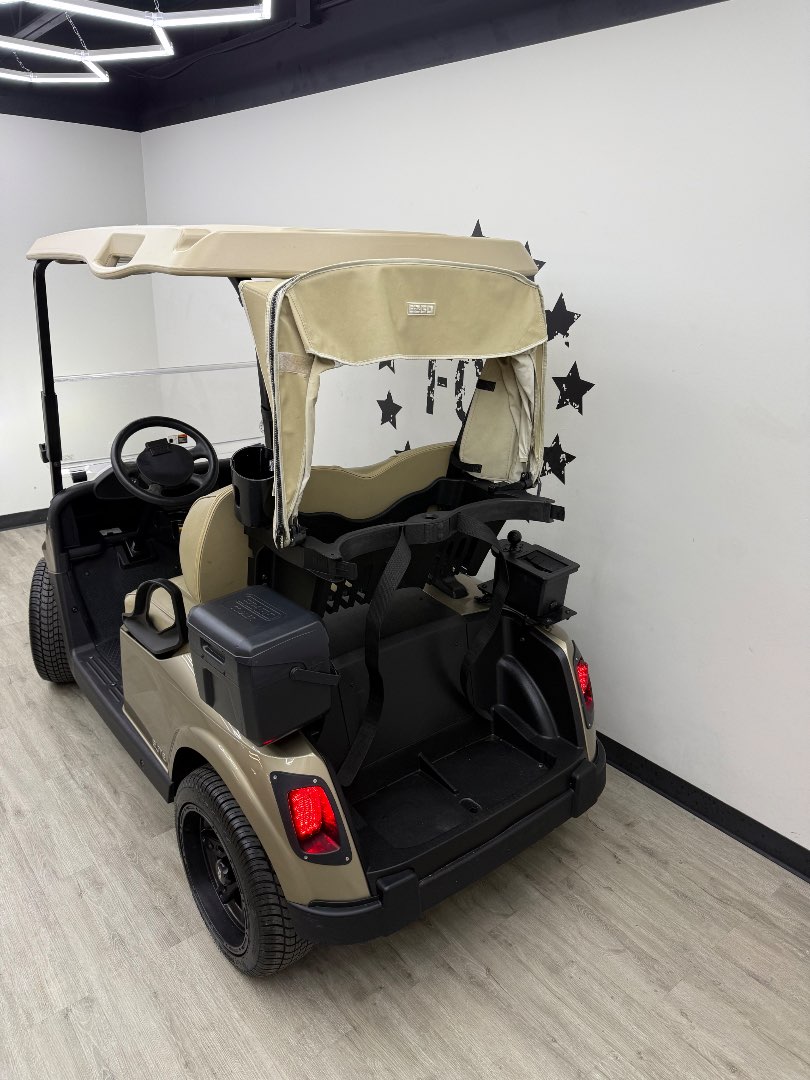 The 2021 EZGO RXV Elite features a 56V lithium battery system, 48 Volt AC motor, and a 235 Amp AC controller. It also delivers a top speed of 17.5-19.5 mph (28-31 kph) with motor shaft direct drive.