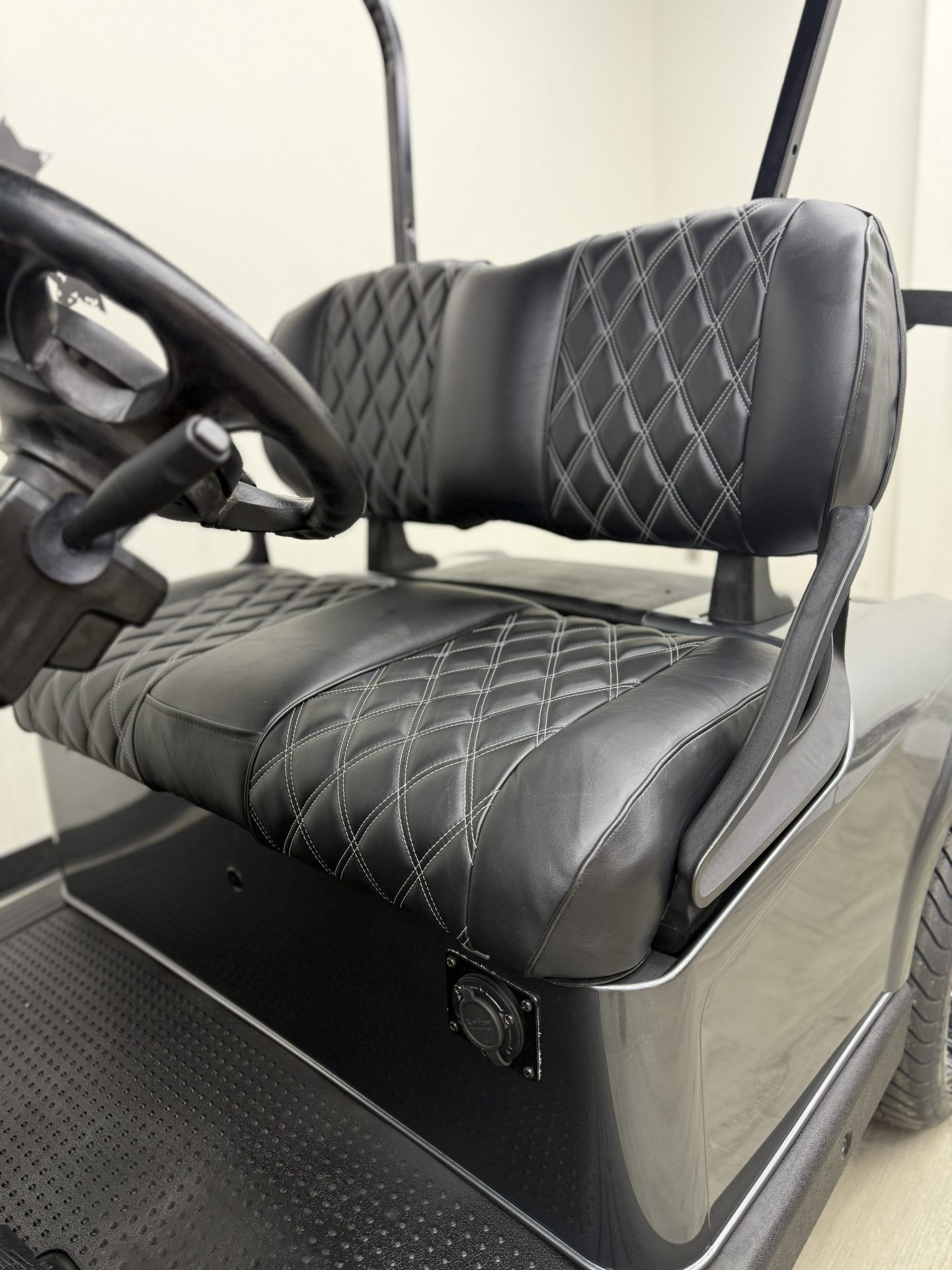 - New Custom Double Diamond front bench seating black with cell phone pockets added